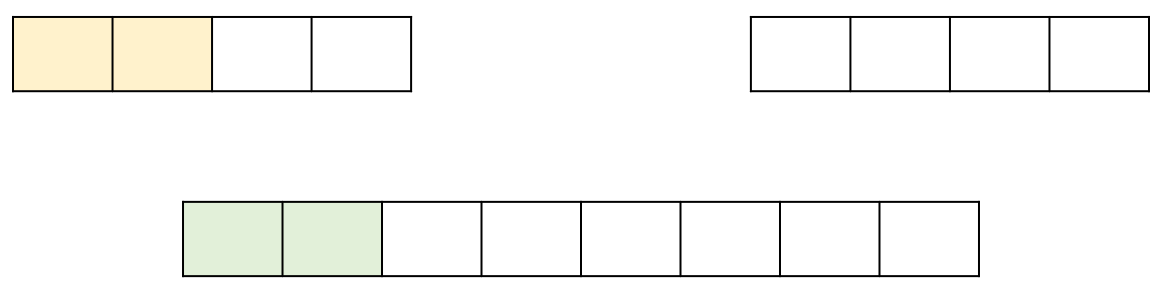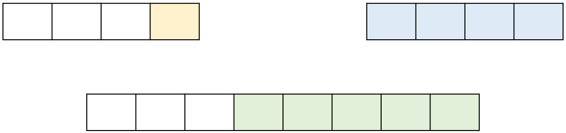 2개의 subarray에서 각각 최대 subarray sum을 구한 후, 두 subarray를 합쳤을 때의 subarray sum을 구해나가면 전체 배열의 최대 subsum을 구할 수 있다. 두 배열을 합쳐 최대 subsum을 구하는 방법은 다음과 같다.