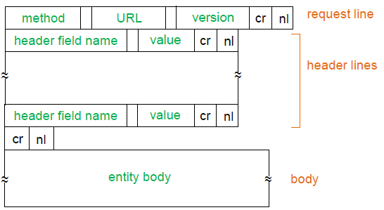 HTTP request message는 다음과 같은 구조를 갖는다.