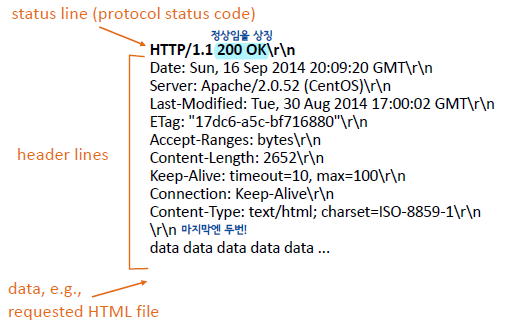 HTTP response message는 다음과 같은 구조를 갖는다.